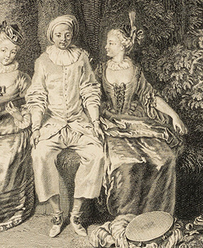 Gérard Jean-Baptiste Scotin after Watteau, Les Jaloux (detail), engraving.