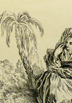 François Boucher after Watteau, Femme de Matsmey à la terre d’Ieço (detail), engraving.