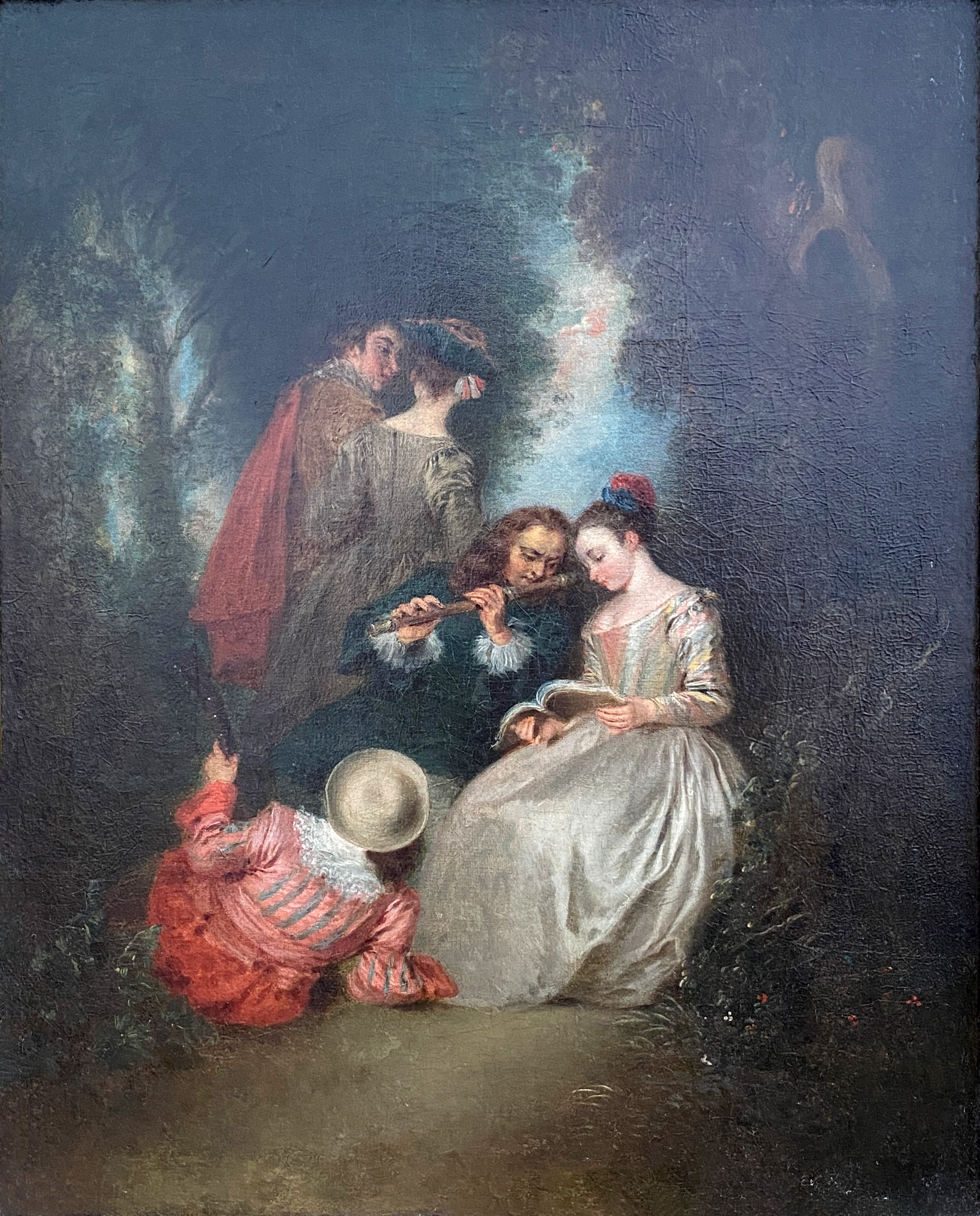This copy, based on Bernard Baron’s engraving after L’Accord parfait, is approximately 2.5 times the size of Watteau’s original painting but is not proportionately better. The rendering of the trees suggest that it is nineteenth century or later in origin.