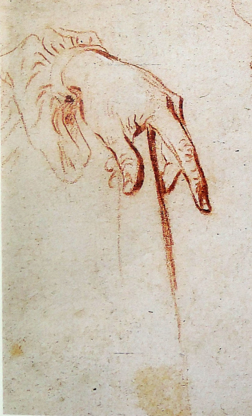 In 1984, Rosenberg sought to link a study of a man’s hand holding a cane to the hand of the adventuress in our painting. Subsequently Rosenberg and Prat (cat. 416) rightly rejected this association; not only is there a difference of gender but also the fingers are positioned differently.