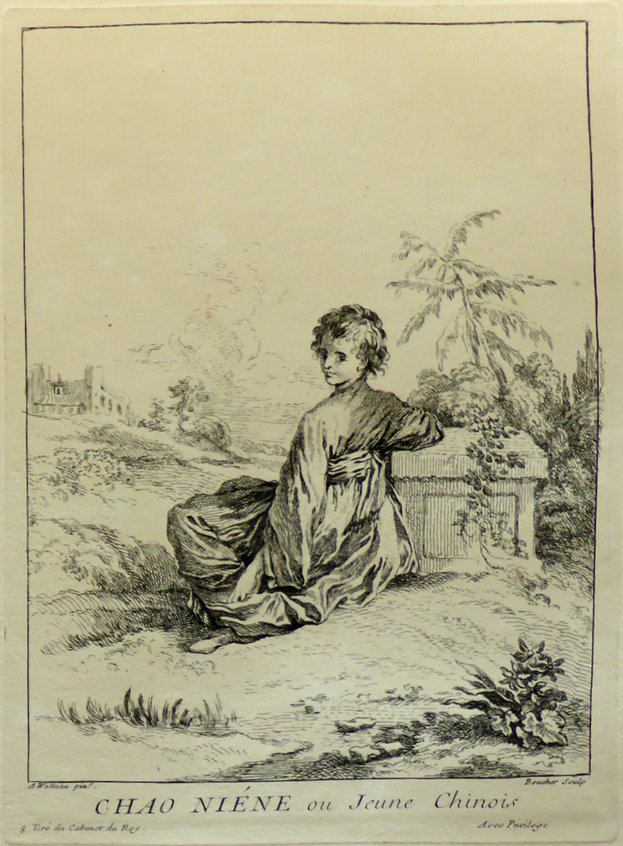 François Boucher after Watteau, Chao Niéne ou jeune chinois, engraving, c. 1731.
