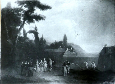 This painting is known to me through a photograph in the Getty Research Institute. The verso of the photo indicates that the picture was attributed to an anonymous eighteenth-century artist. The direction of the composition shows that it was based on one of the engravings after Watteau’s picture, undoubtedly the one by Larmessin that was more widely available. That this copy is based on an established Watteau composition but with the figures spaced out across a wide landscape suggests analogies with several other copies after Watteau. Some of these works have an English provenance, which suggests the paintings’ possible origins.