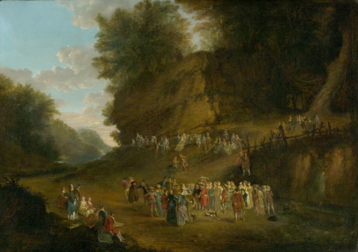 Sale, London, Christie’s, December 18, 1980, lot 20: “François Louis Joseph Watteau, called Watteau de Lille. A festival in a rocky wooded landscape signed 27 1/4 × 38 in. (69.2 × 96.5 cm.)”