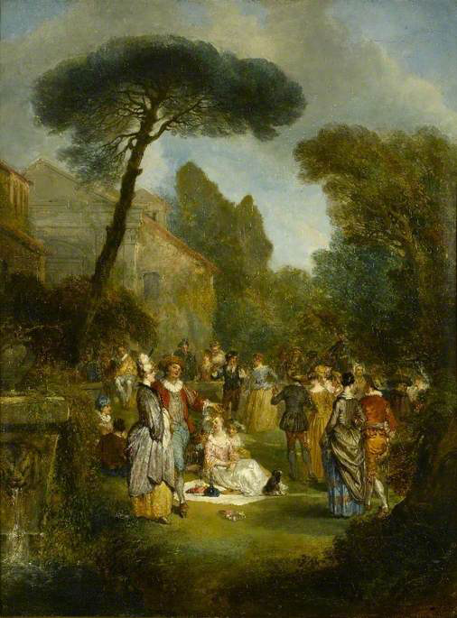 As can be told by its reversal of Watteau’s composition, this picture corresponds to the engraving by Charles Nicolas Cochin. The attribution to the mid-eighteenth century is perhaps too generous.