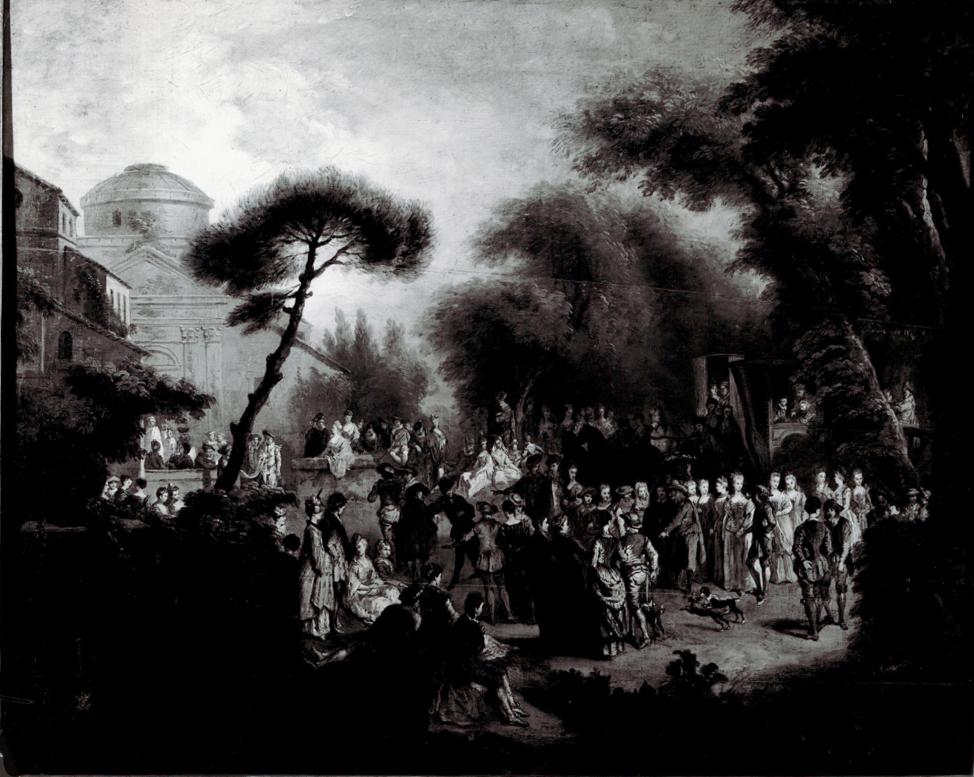 Except for its prior location, we know very little about this work. A photograph of it shows that it was executed in the opposite direction of Watteau’s canvas, and therefore must have ben based on the print by Charles Nicolas Cochin.