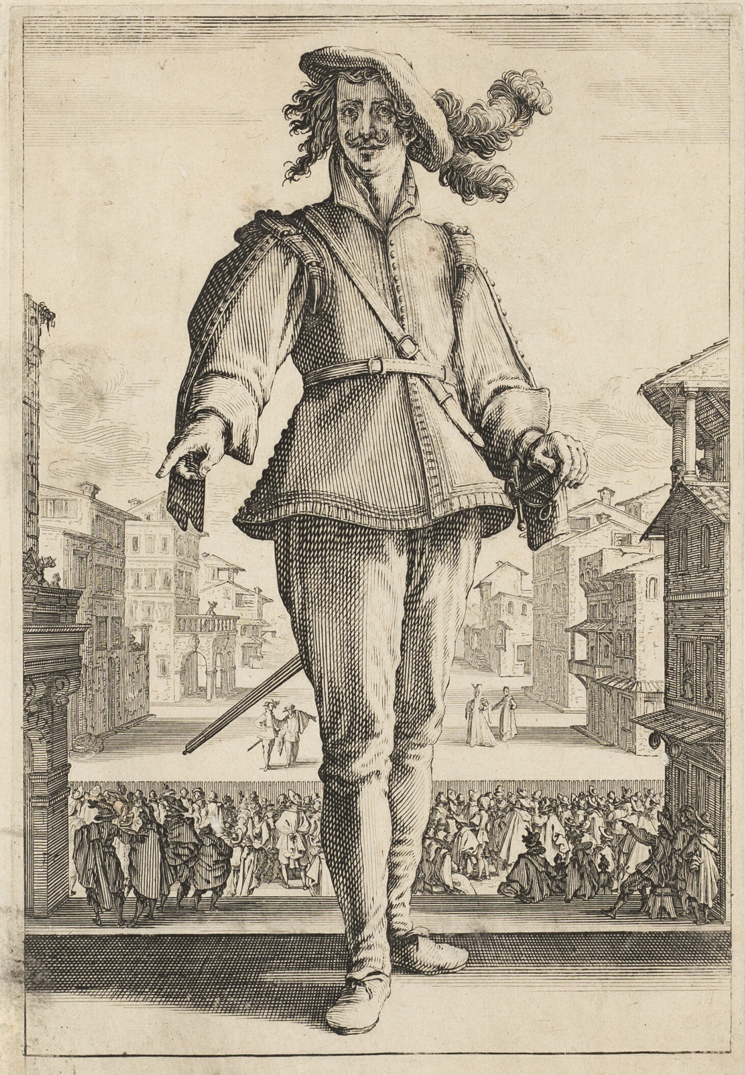Intrigued by the compositional formula used in La Marmote and La Fileuse, scholars have sought to establish the pictorial source that may have inspired Watteau. Some have pointed to the work of Jacques Callot, while others have preferred David Teniers. Although from different centuries and different artistic traditions—one Mannerist, the other Baroque realism—these examples share the same idea of a large central figure towering over a landscape that set on a much smaller scale. While we cannot prove which source Watteau turned to, it does establish the basic truth that Watteau was responsive to older, established traditions. Collectors in the early eighteenth century, like Pierre Crozat, greatly favored Flemish painting, and that taste helps explain why Watteau and his contemporaries painted scenes echoing those represented by artists such as Teniers.