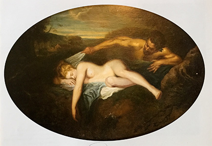 Paris, sale, April 18-20, 1785, lot 114: "Une dormeuse nue, & un Satyre qui la regarde: tableau estimé être de Watteau, sur toile de 9 pouces 6 lig. de haut, sur 11 pouces de large." Not sold.