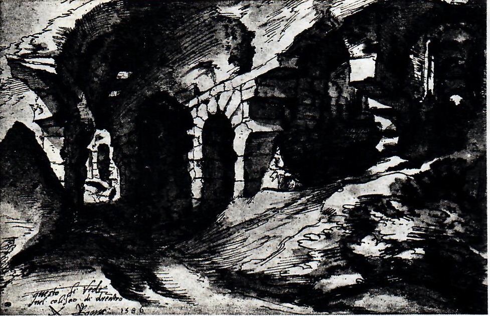 The complex, monumental vaults, classical moldings, and uneven terrain establish that the site that Watteau painted was the ruins of the Colosseum in Rome. Although Watteau never traveled to Italy as he had hoped to do, he had access to drawings by French and Dutch seventeenth- and eighteenth-century artists who had made the trip. The Colosseum impressed so many visiting artists that it was almost obligatory to record the site. Moreover, pictures like Thomas Wyck’s remind us that such Roman monuments were often the subjects of paintings. In short, both visual data and artistic precedence would have guided him in painting La Ruine.