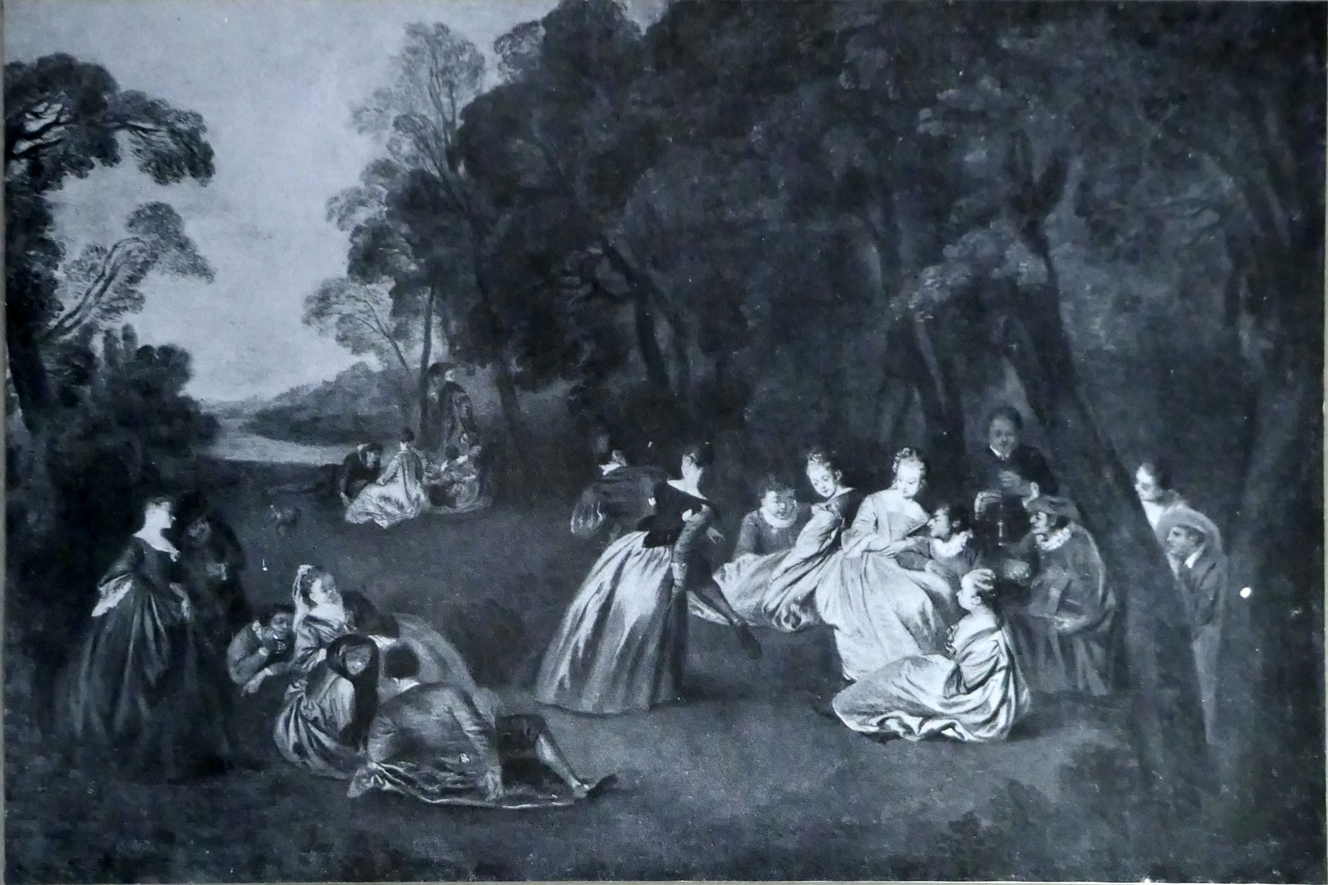 Given that these borrowings are in the same sense as Watteau’s paintings, we can conclude that the plagiarist did not work from engravings (in fact, Divertissements champêtres was not engraved). Might this indicate that the pastiche was executed early in the eighteenth century when the originals were still visible? Could this painting have been executed by Pater, as was proposed in 1927? Some of the faces do suggest his hand. Or was it created by a lesser follower? Another possibility is that it was painted in the nineteenth century when photographs of Watteau’s paintings were available. Unfortunately, the reproduction in the 1927 sale catalogue is not particularly clear, and the painting has not been seen in almost a century.