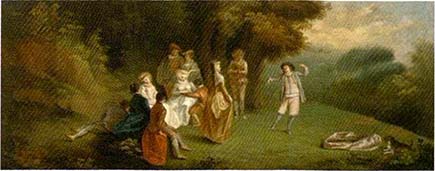 Paris, collection of Édouard Alphonse James de Rothschild (1868-1949; financier). A photograph of the painting in the Service de documentation, Département des peintures, Musée du Louvre, is marked on the verso as being in the Rothschild collection. Unlike the Watteau original, this version has less space devoted to the landscape and sky, resulting in a more horizontal composition that corresponds to the term “forme de frise” used by de Goncourt.